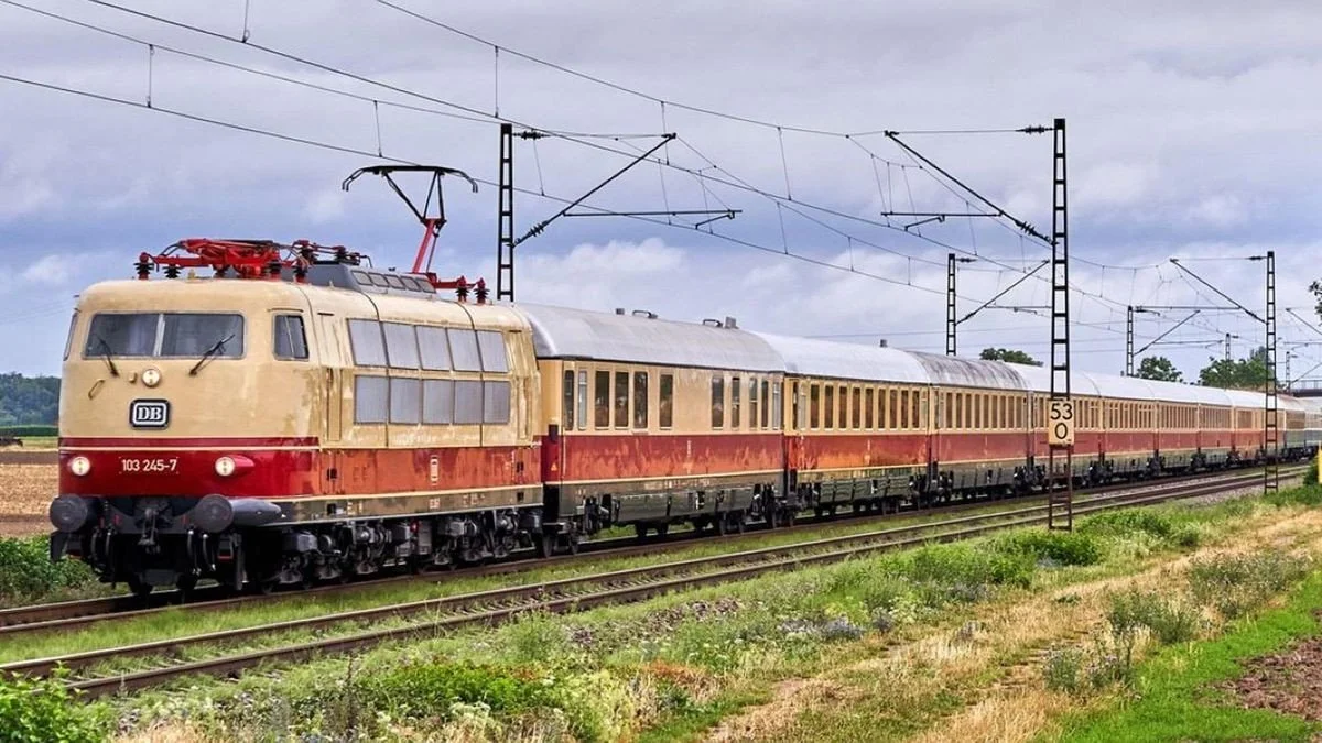 103 222, eine der zwei Maschinen mit einer Höchstgeschwindigkeit von beachtlichen 280 km/h ist Teil des Lokotivparks von RailAdventure. Sie zieht im Dienst von RailAdventure Überführungszüge.